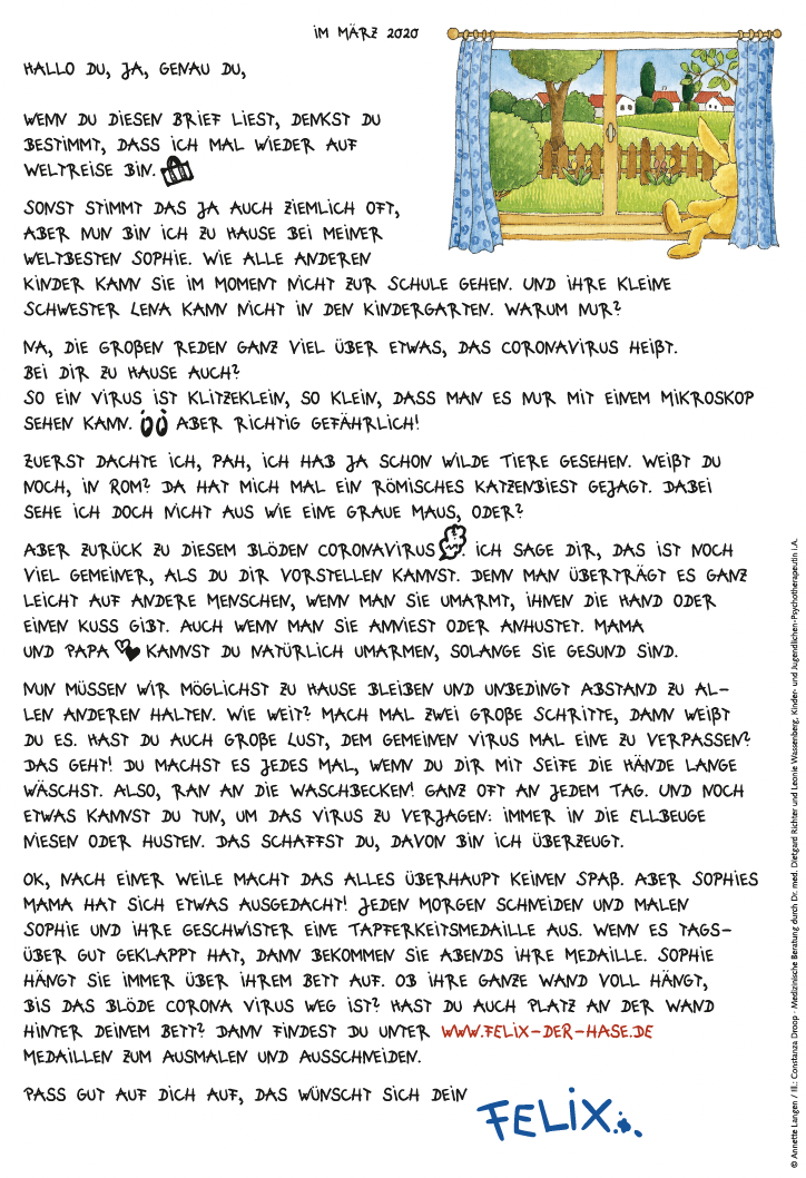 Felix Brief Wenn du diesen Brief liest, denkst du bestimmt, dass ich mal wieder auf Weltreise bin…Tapferkeitsmedaillie von FelixBrief im PDF lesen manxdesign23. September 2021 Facebook0 0 Likes